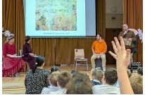 21 октября 2025 года в гостях у учеников начальной школы на ул. Цюрупы побывали актеры театра «Мастерская «12» Никиты Михалкова с интерактивной поэтической программой «Осенние стихи. Цикл «Русская поэзия».
